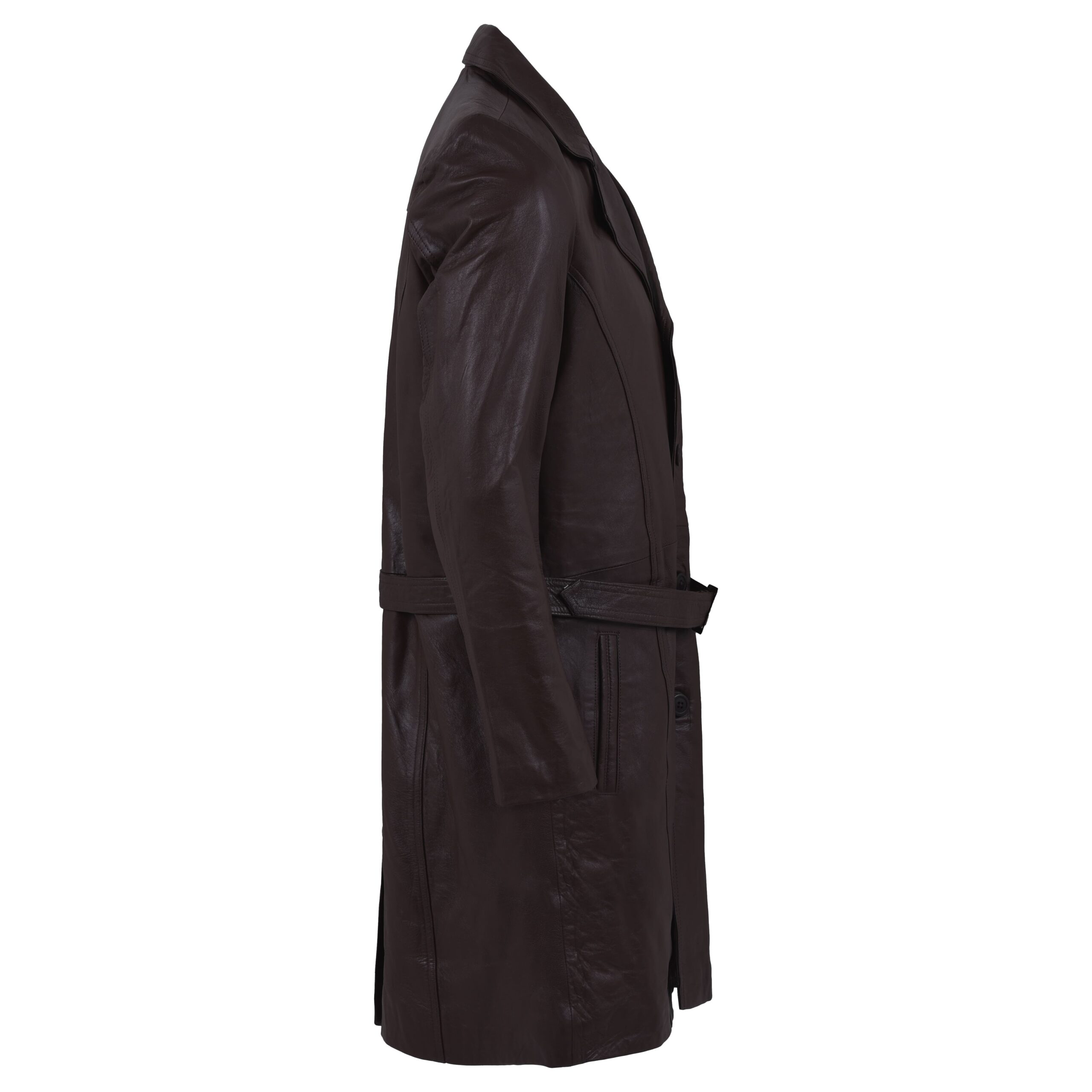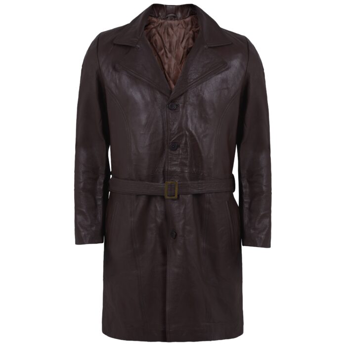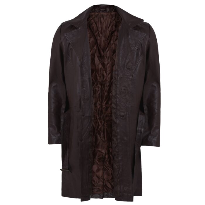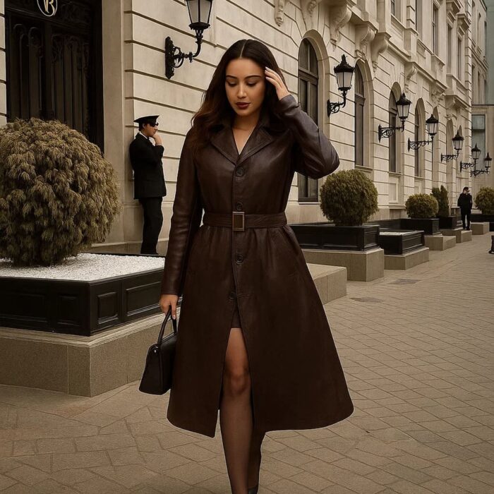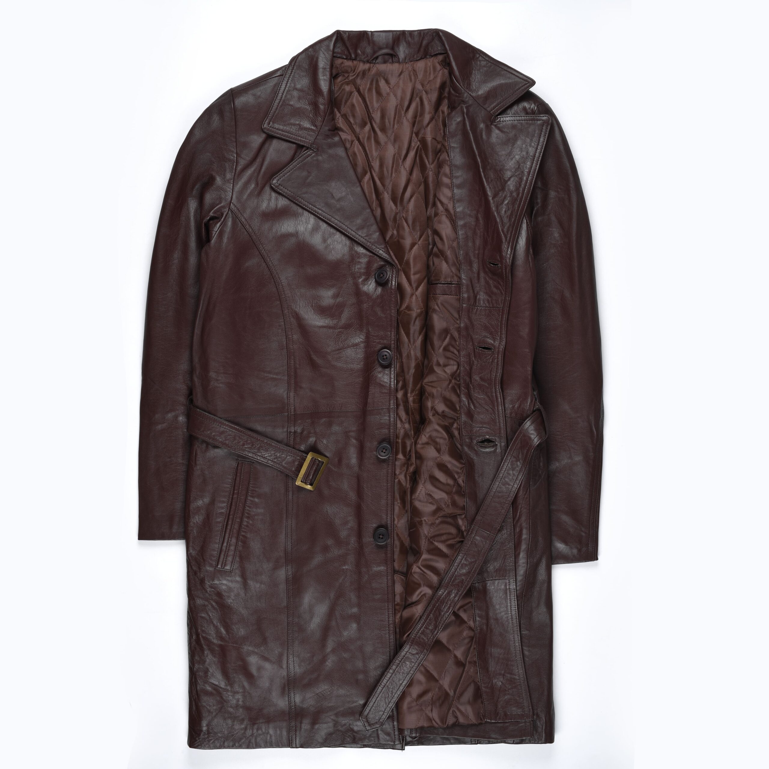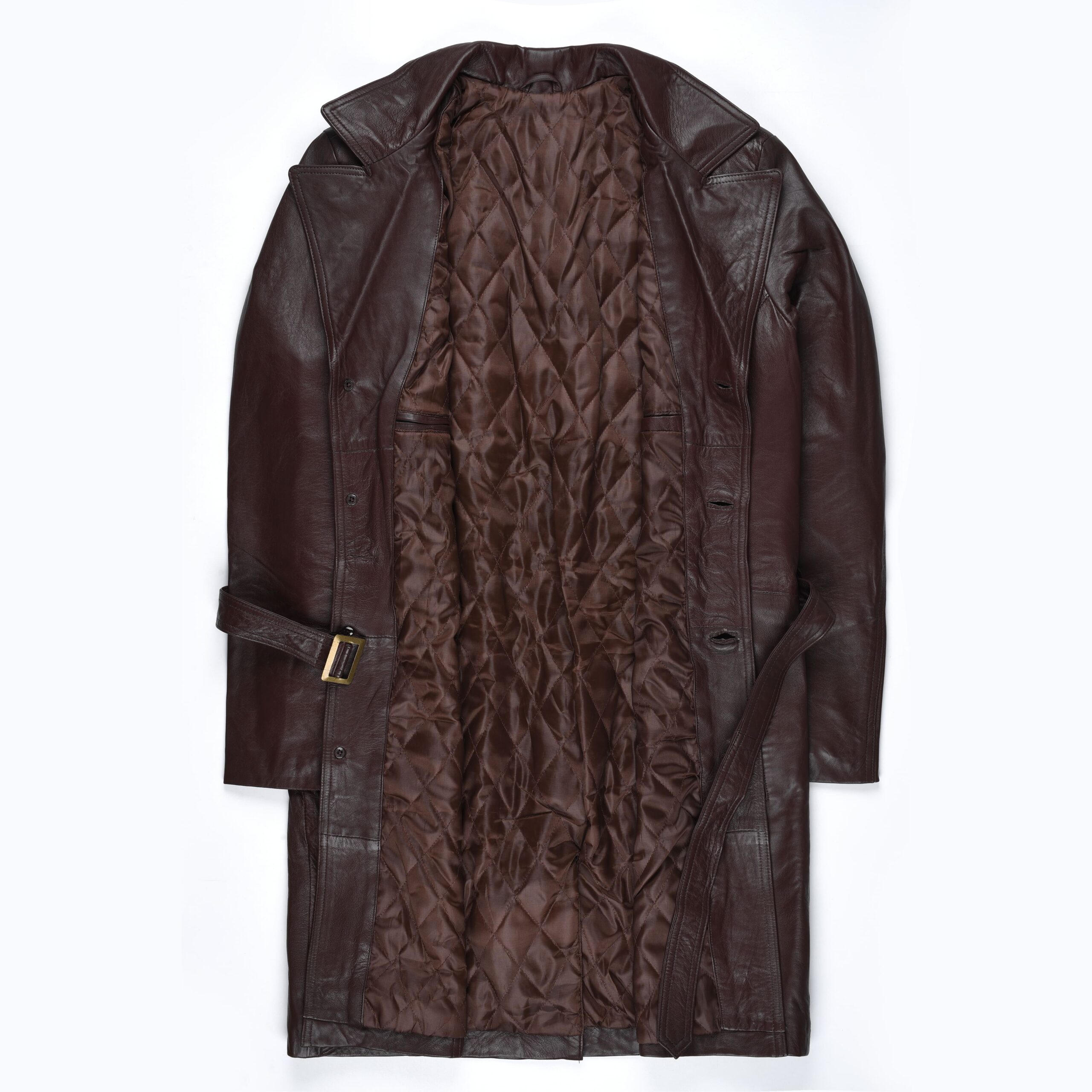 Step out in timeless elegance with this premium brown sheepskin leather trench coat, crafted for both sophistication and durability. Featuring a smooth leather exterior, a soft quilted lining for comfort, and a matching belt for a tailored fit, this coat combines luxury with practicality. The classic button closure and long silhouette make it a versatile piece for both casual outings and formal occasions.