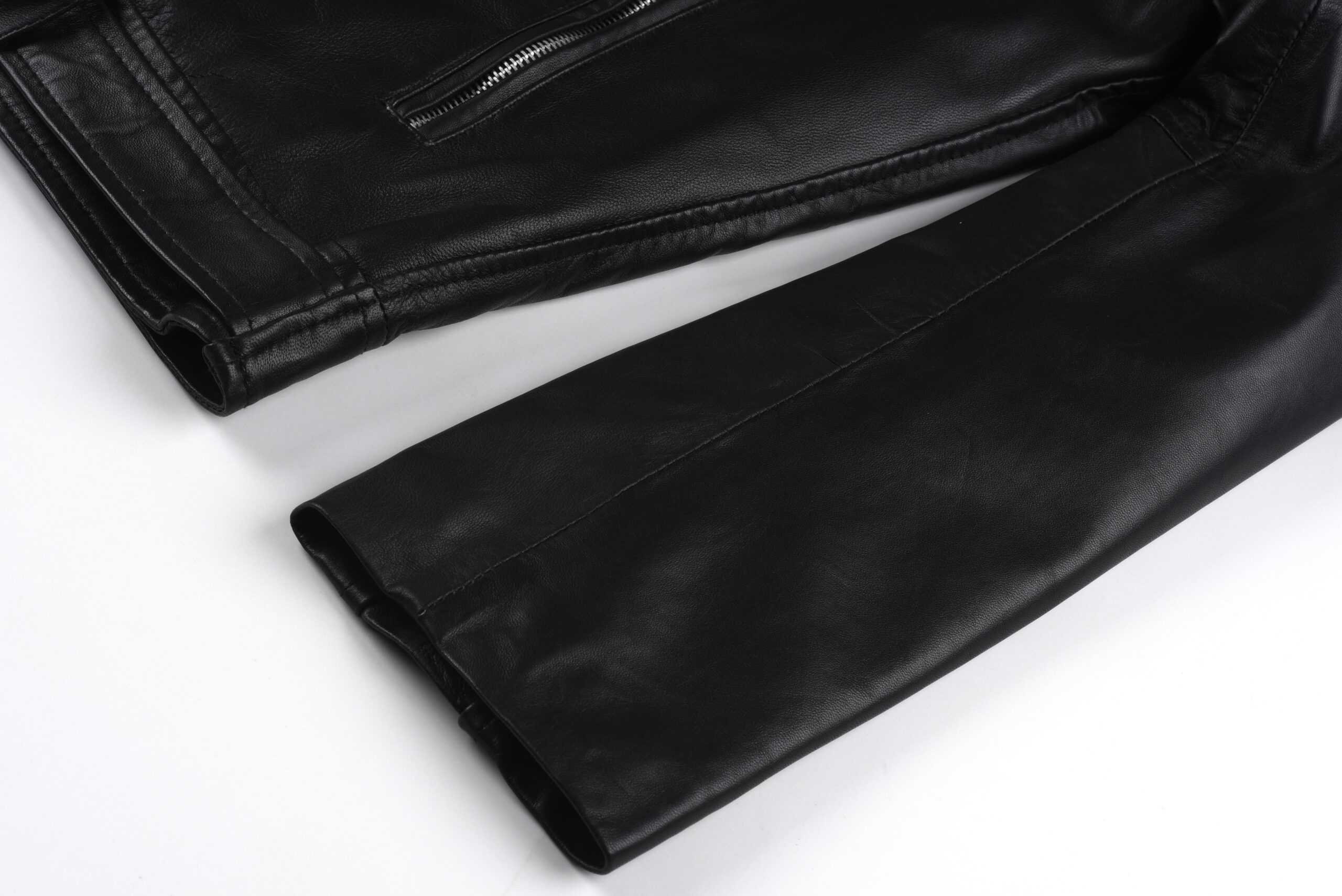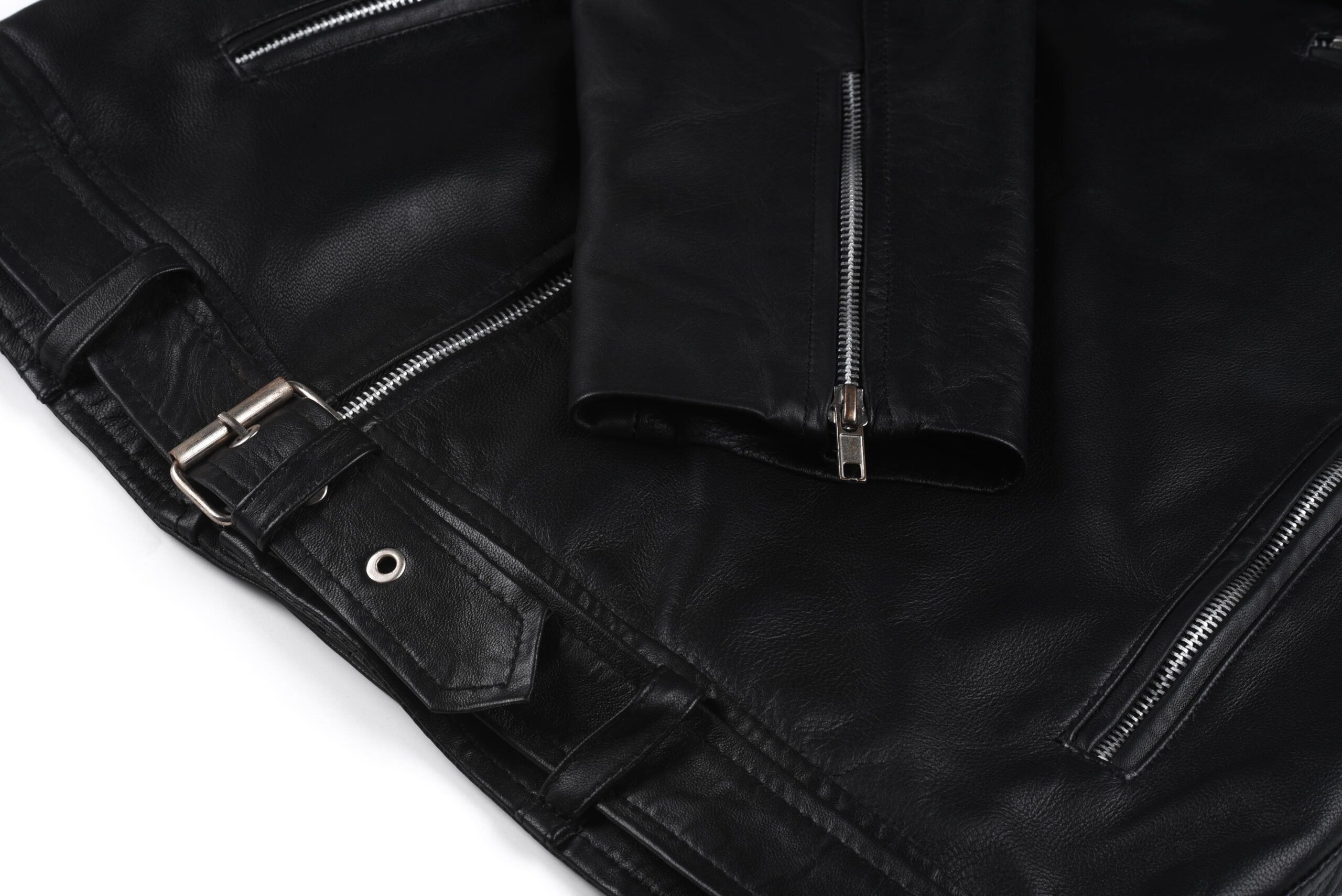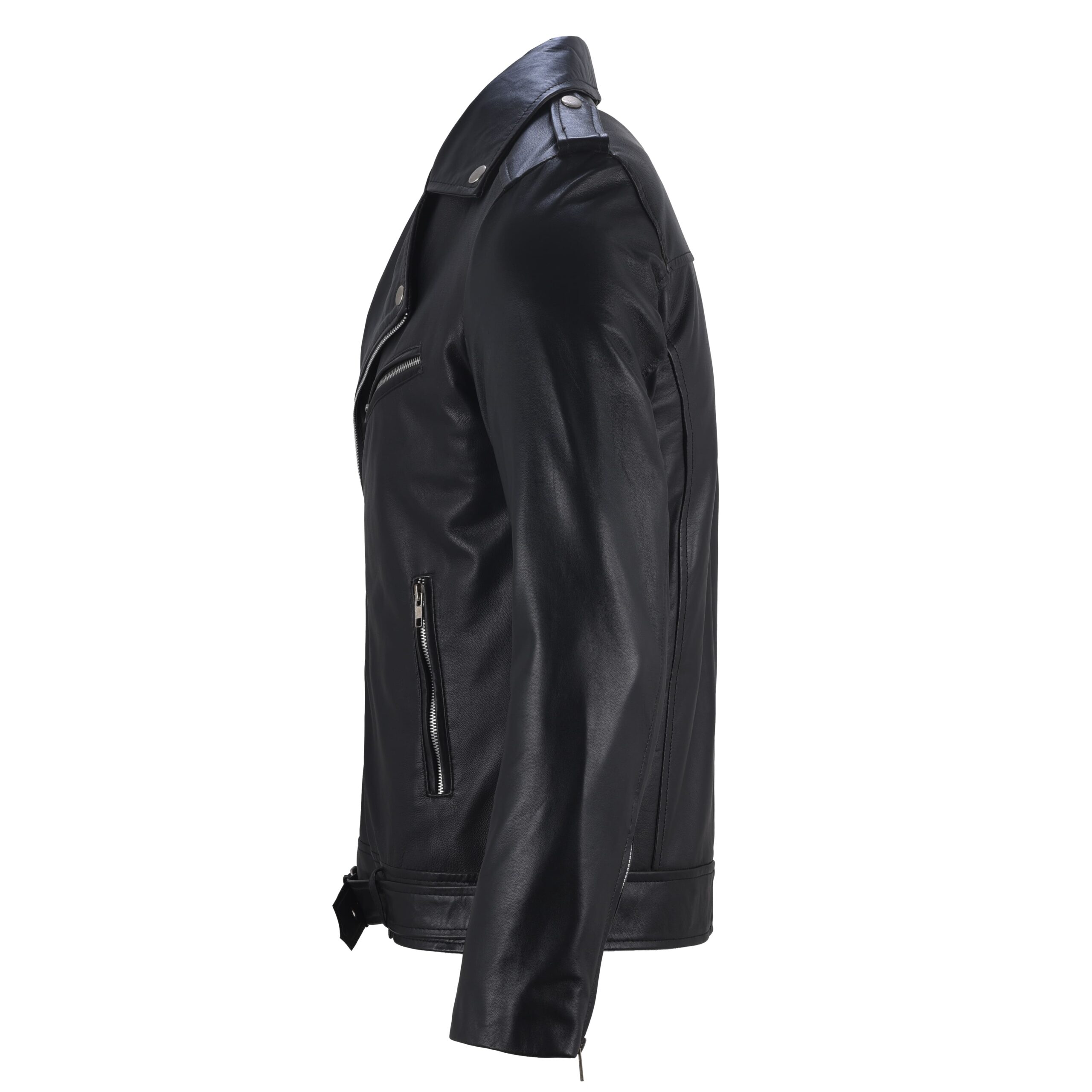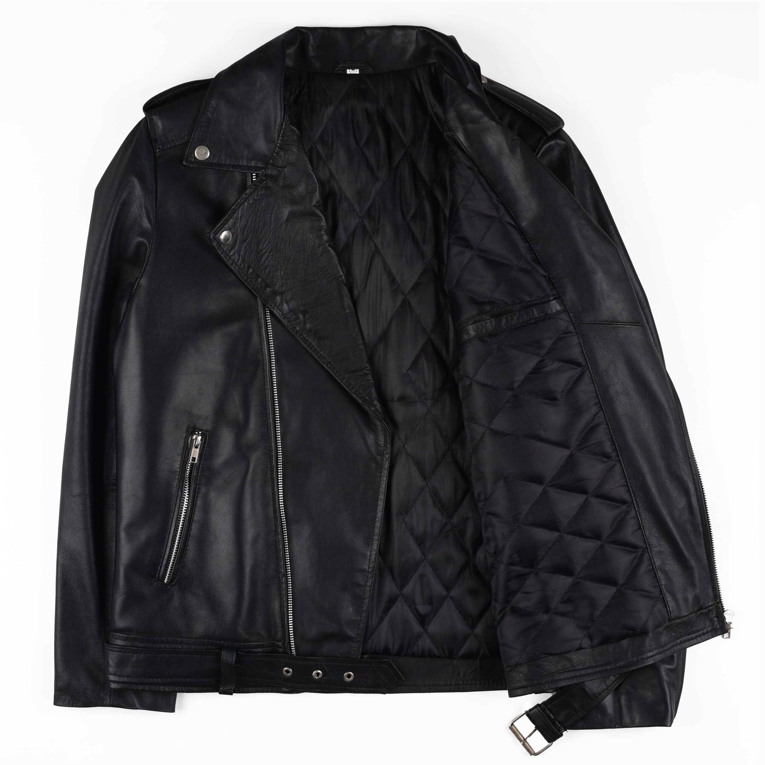 Ride in confidence and style with this men’s black leather biker jacket, made from premium genuine lambskin leather for unmatched softness, durability, and comfort. Its asymmetrical zip closure, wide lapel collar, and waist belt define the timeless motorcycle aesthetic, while the quilted inner lining ensures warmth and all-day wearability. Equipped with multiple zippered pockets, this black lambskin moto jacket blends functionality with rugged sophistication. Whether cruising the highway or styling up your weekend outfit, this jacket makes a bold statement every time you wear it.
