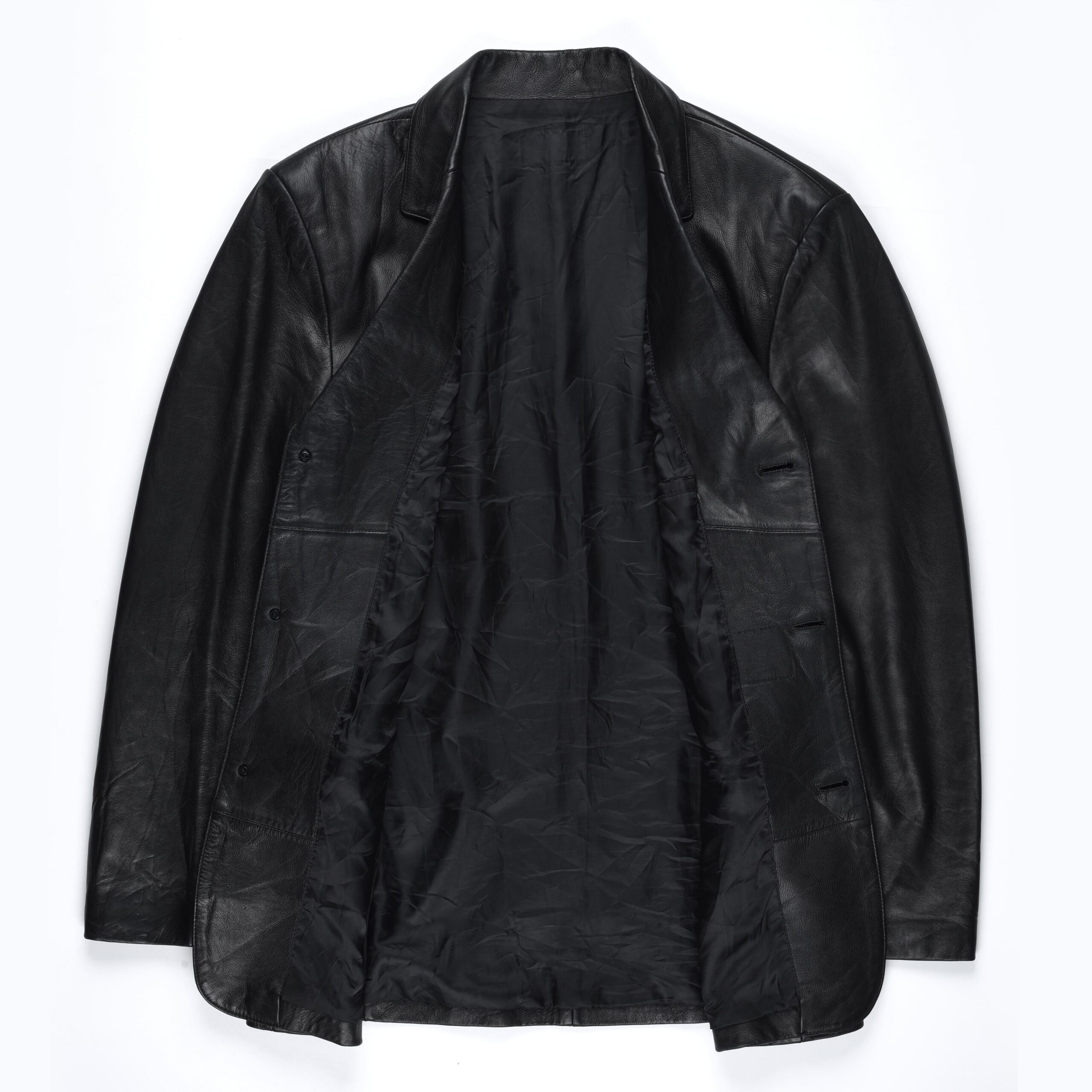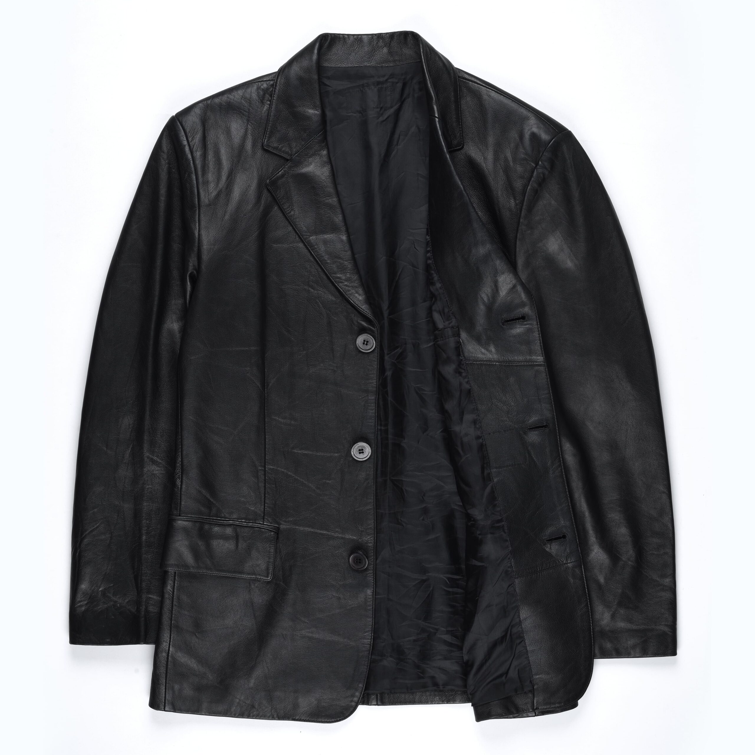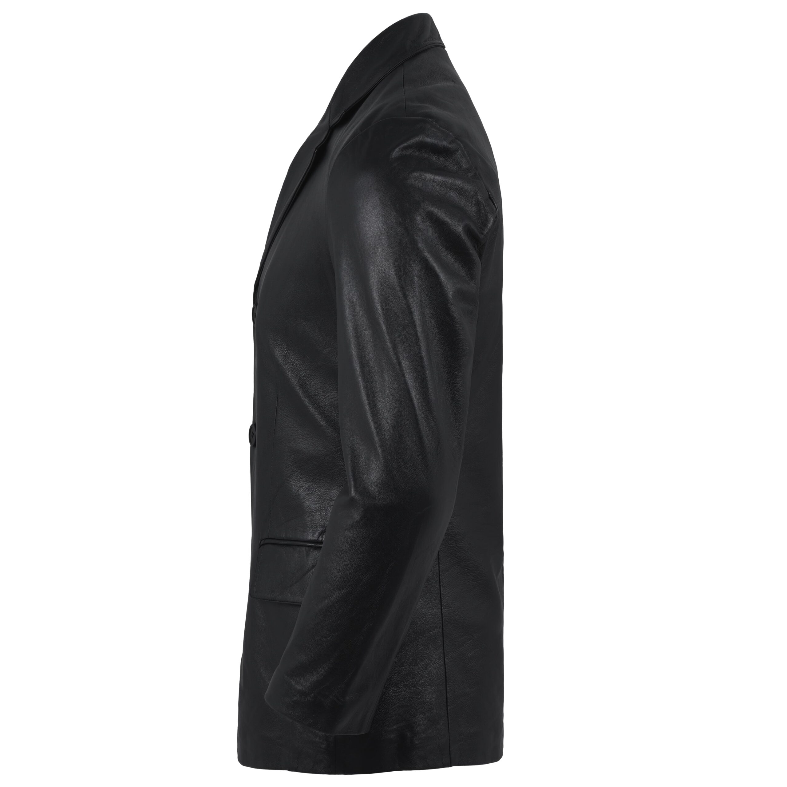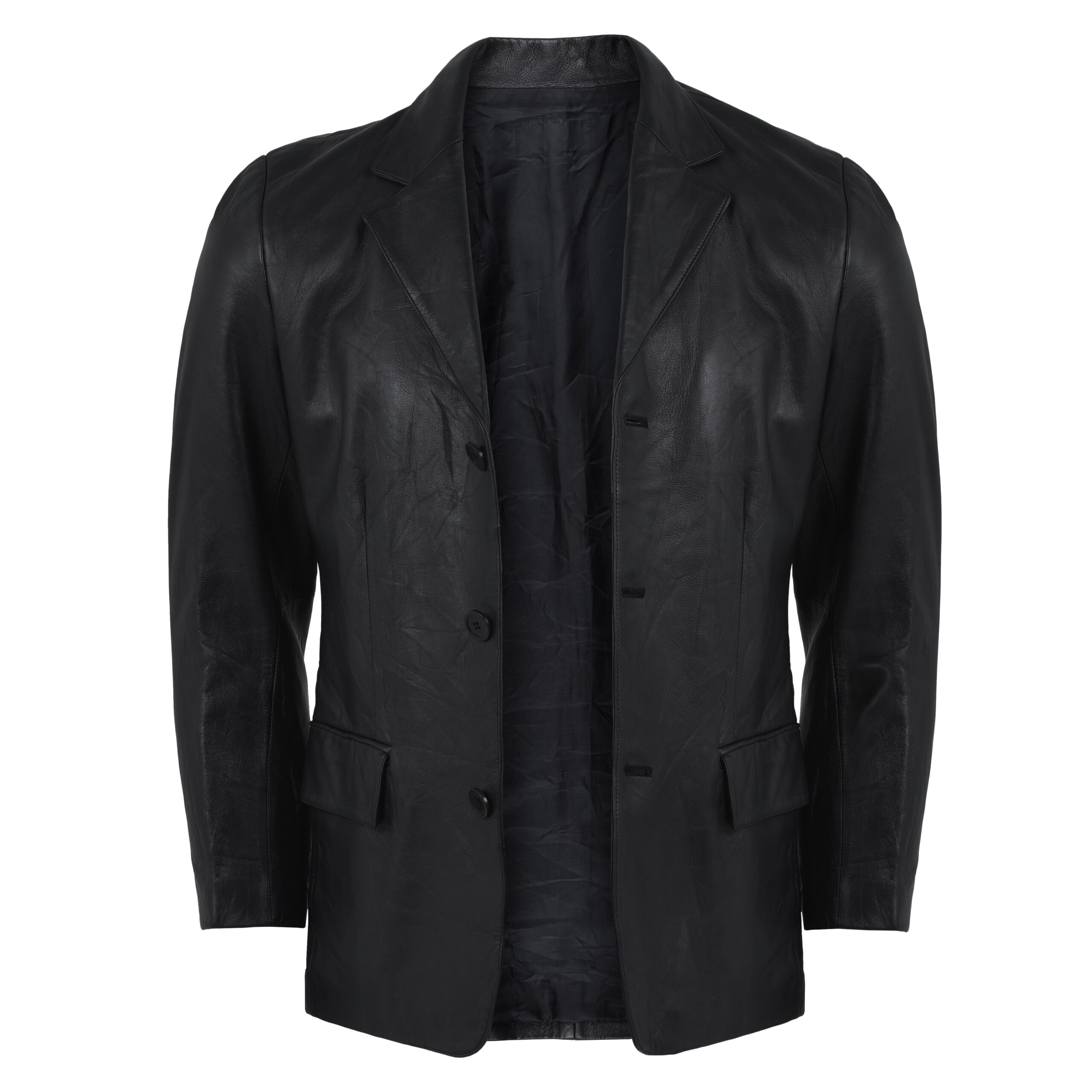 Men’s Black Leather Blazer Jacket – Genuine Lambskin 3-Button Classic Formal Coat