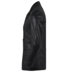 Step into refined style with this men’s black leather blazer jacket, crafted from premium genuine lambskin leather for a smooth, supple finish and lasting comfort. Designed with a classic 3-button closure and notch lapel collar, this leather coat delivers the perfect mix of formal elegance and rugged charm. The two front flap pockets and inner lining enhance practicality and warmth, making it suitable for both office wear and smart-casual outings. Perfect for layering over shirts, sweaters, or t-shirts, this black lambskin blazer is a timeless wardrobe investment that redefines modern sophistication.