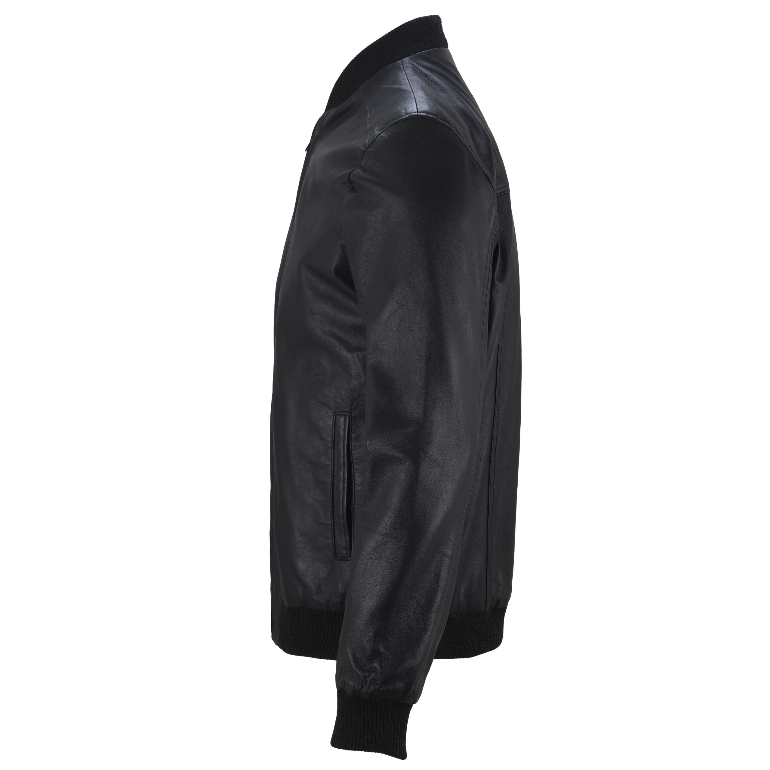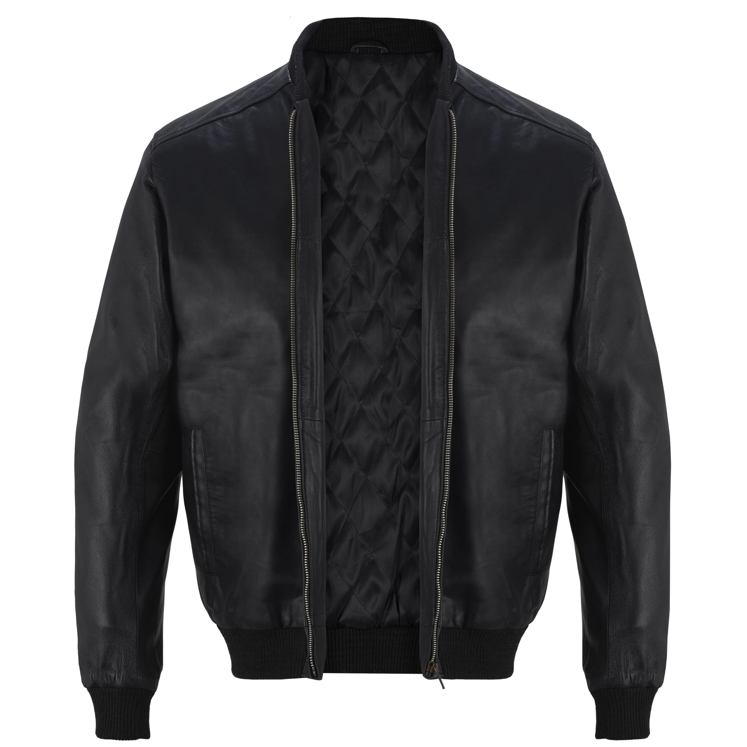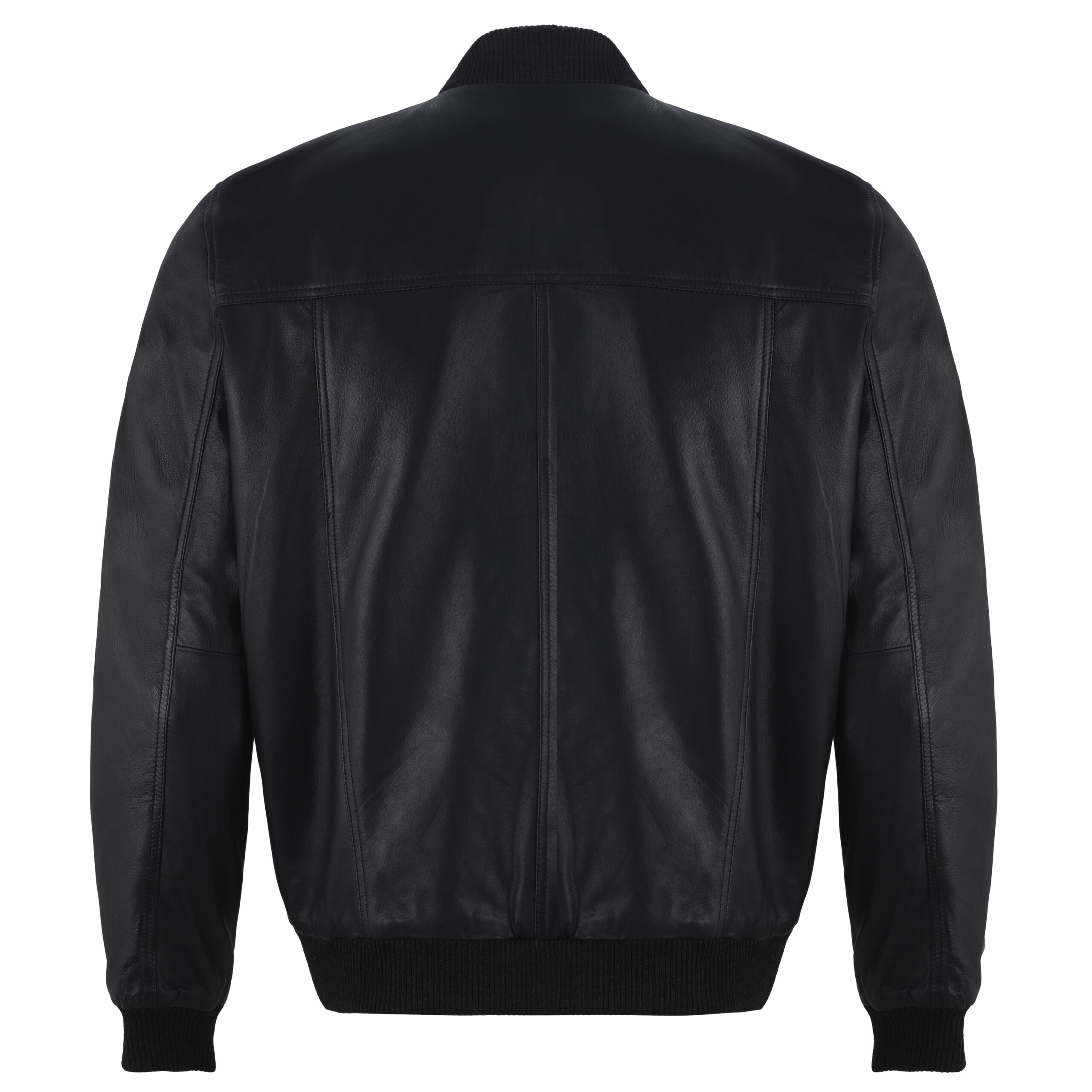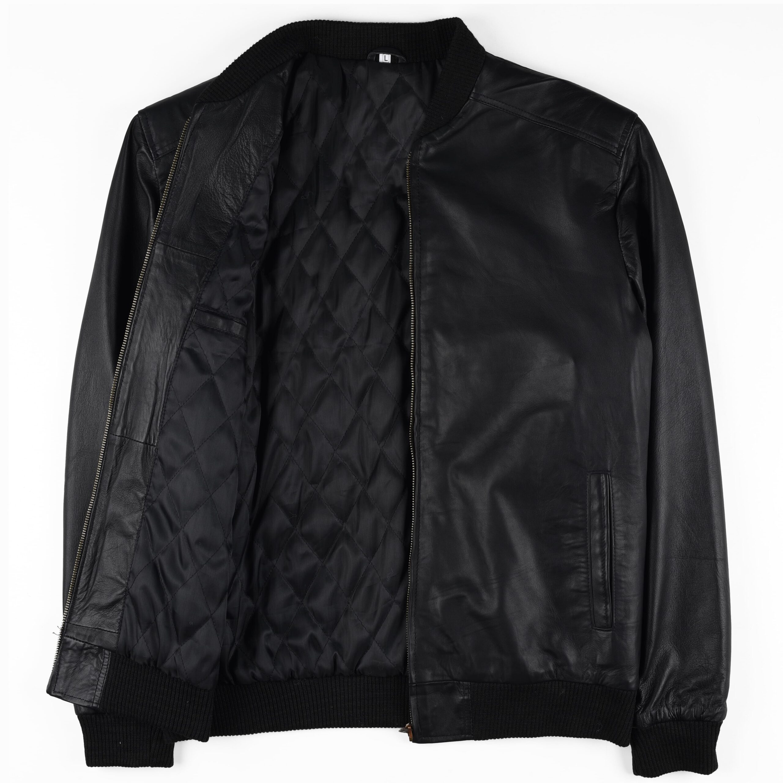 Redefine classic style with this men’s black leather bomber jacket, crafted from premium genuine lambskin leather for unmatched softness and durability. The minimalist design features a ribbed collar, cuffs, and hem, delivering a tailored yet comfortable fit that flatters every body type. Its front zip closure and side welt pockets add practicality and a sleek aesthetic. Whether layered over a t-shirt or sweater, this black leather bomber transitions seamlessly from day to night, offering the perfect blend of urban sophistication and everyday versatility.