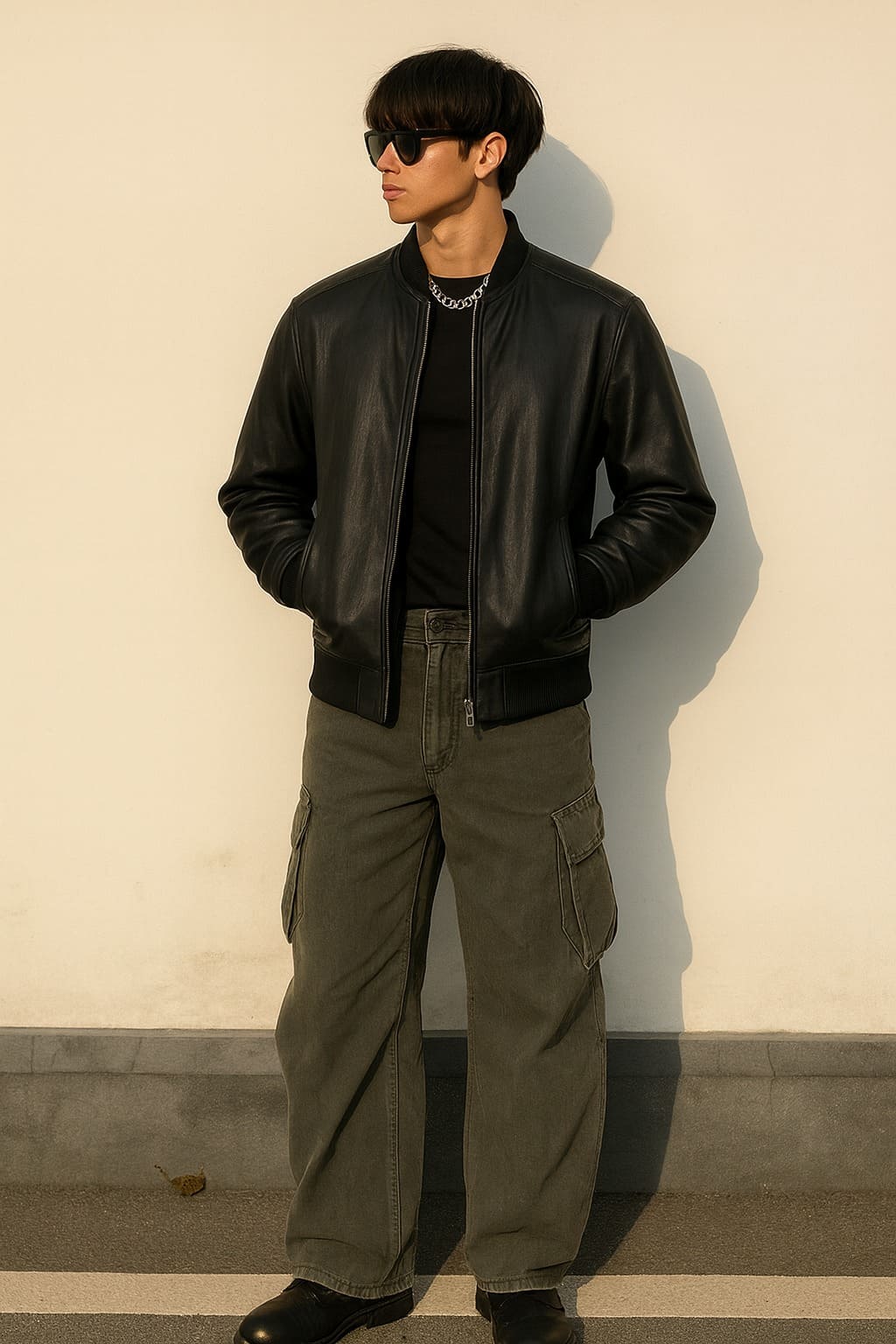 Men’s Black Leather Bomber Jacket – Genuine Lambskin Classic Zip-Up Style