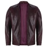 Men’s Maroon Leather Biker Jacket – Genuine Lambskin Padded Shoulder Café Racer Style