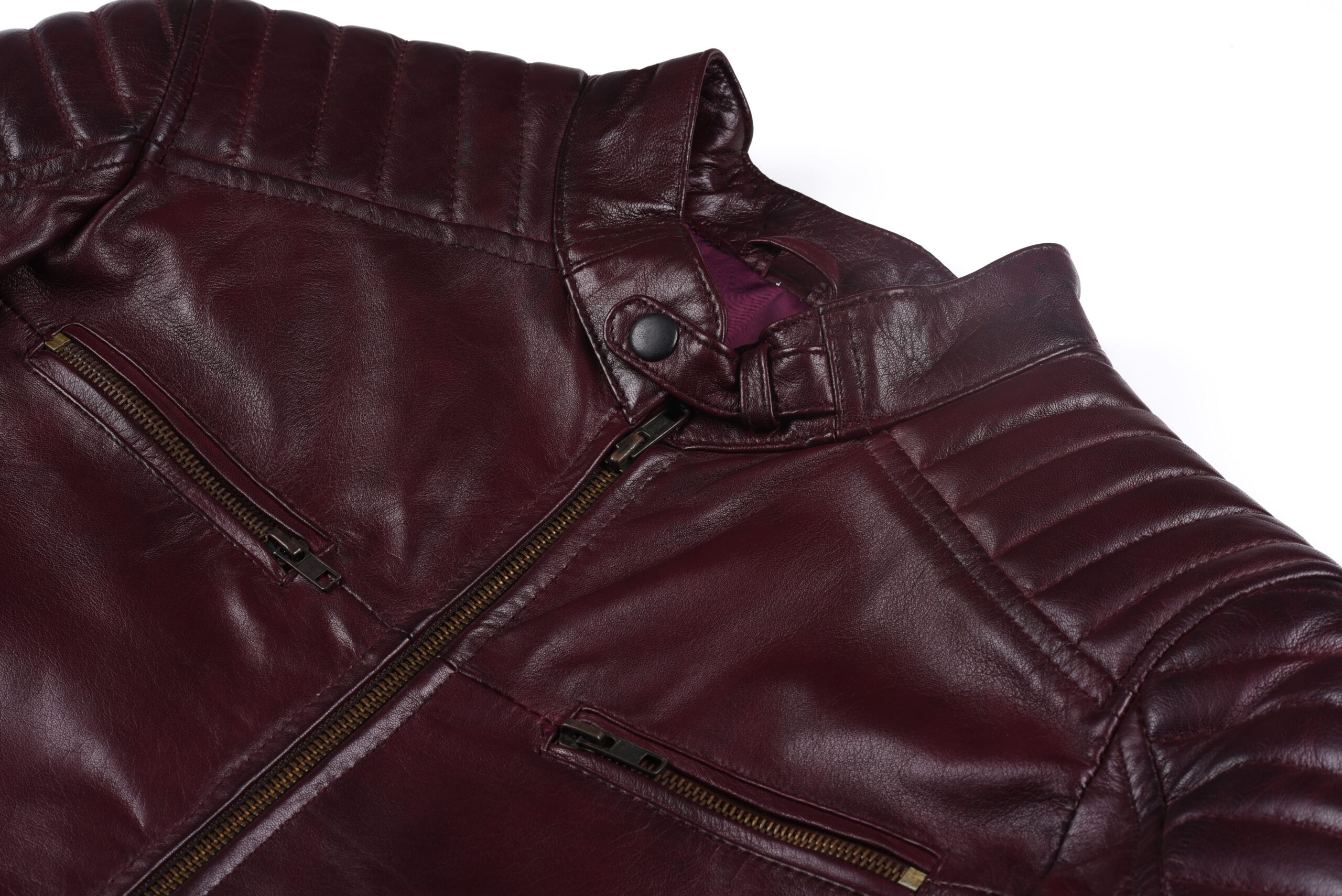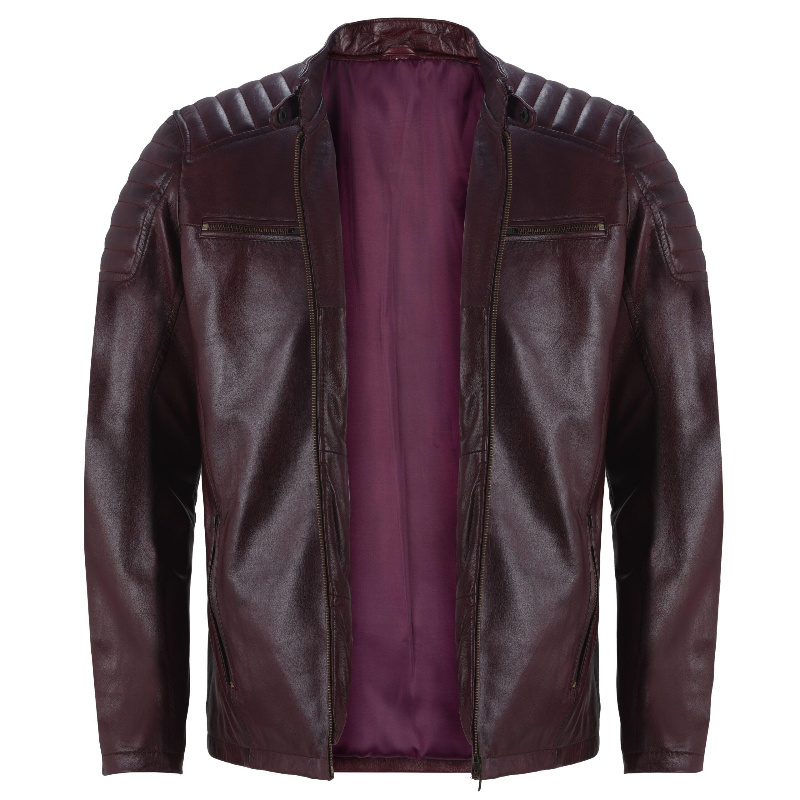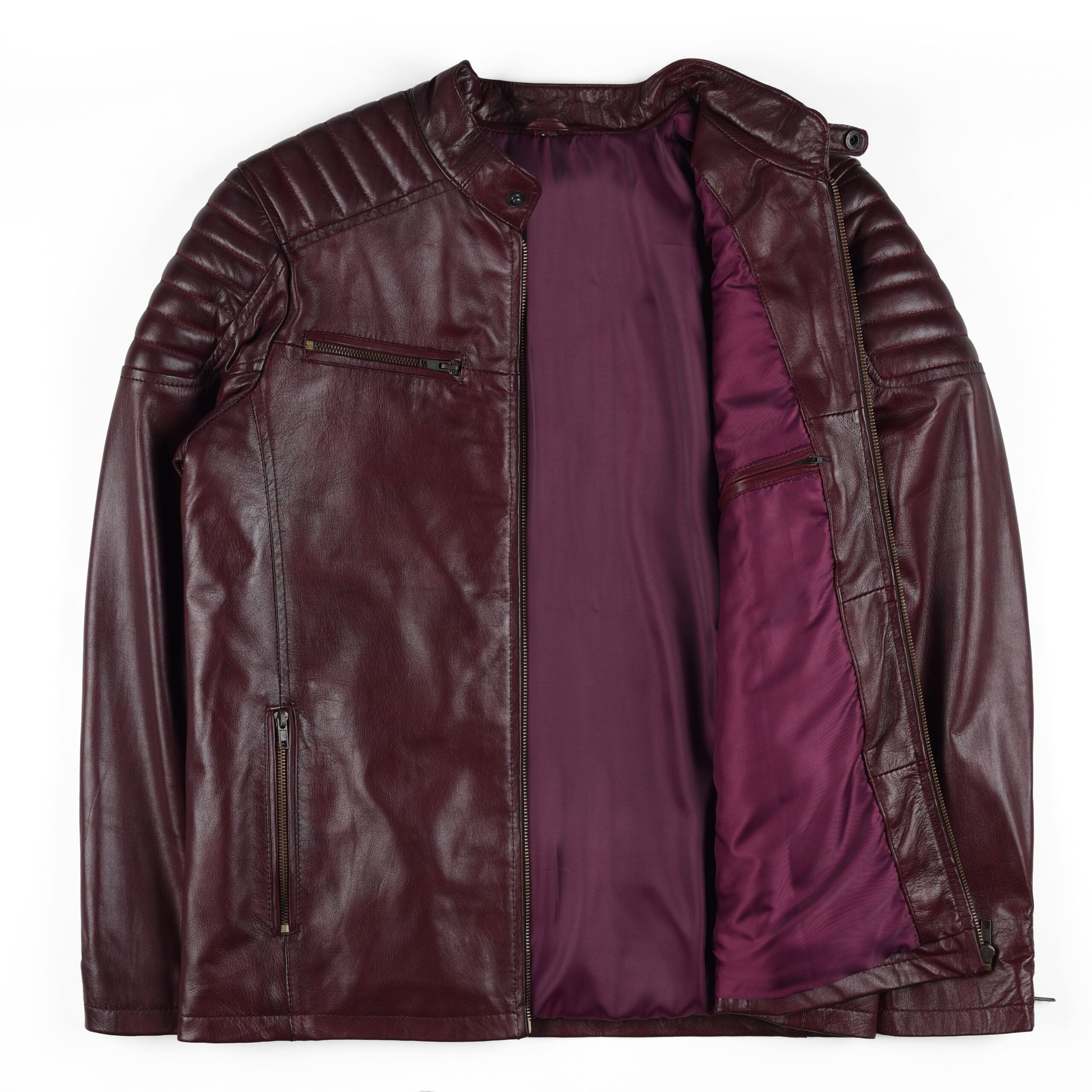 Be the first to review “Men’s Maroon Leather Biker Jacket – Genuine Lambskin Padded Shoulder Café Racer Style” Cancel reply