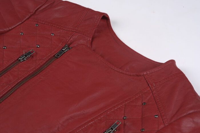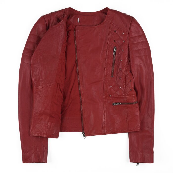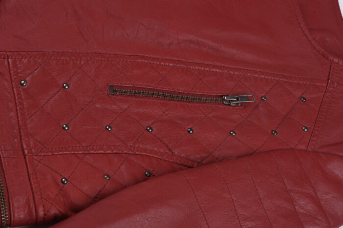 Be the first to review “Women’s Red Studded Leather Biker Jacket – Quilted Slim Fit Moto Style” Cancel reply